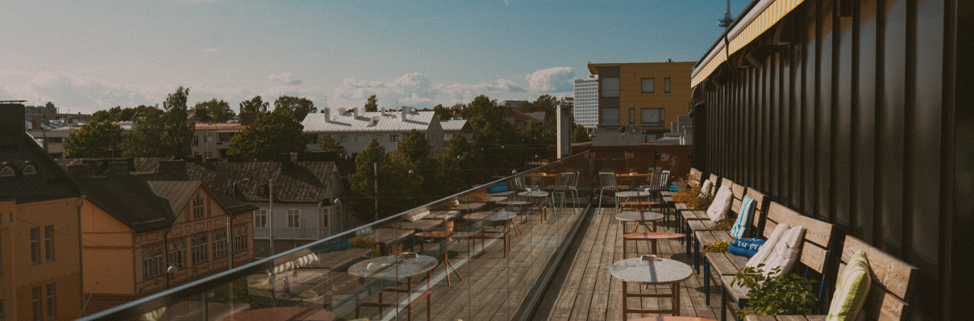 Vallila's meeting place above the rooftops. Sunny lunch moments, after work relaxation and summer evenings above the city.