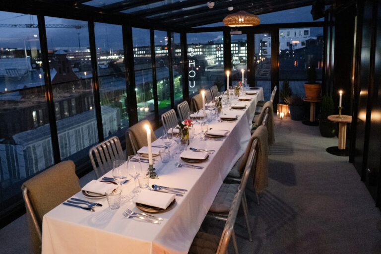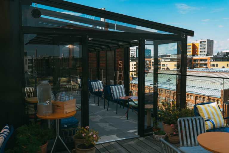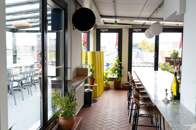 Located on the roof of Folks Hotel, Alexis rooftop bar offers stunning views over Vallila’s rooftops. Outside the summer season, Alexis welcomes guests in the winter garden, where it’s possible to arrange private events for up to 25 people. The winter garden is suitable for seated dinners for 18 guests or more relaxed gatherings for 25.